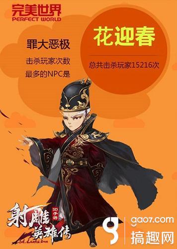 所谓道高一尺,魔高一丈,相信提起花迎春的名字,各位射友也是虎躯一震,更多的则是对其深恶痛疾,没错,就是这孙子,杀我萧别离,斩我不二姐姐,秒我银萍妹子,完事不屑地留下一句“三个人打一个还被反杀,会不会玩~”,花迎春在本次测试总计击杀玩家15216人次,按平均每名玩家三个侠客计算,约有45648位豪侠面对花哥铩羽而归,至此,花哥以万人斩之势,拿下本次测试罪佳反派称号!
