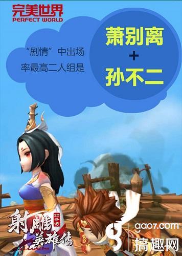 孙不二,清净散人,全真七子之一,也是全真七子中唯一一名女性角色,武艺平平,在原著小说中属于跑龙套的角色。但在《射雕英雄传3D》手游中,不二姑娘来了一次彻头彻尾地大翻身,高叉裙,深V装,一袭妩媚妖娆的御姐形象深入人心,由于出场较早,且奶量惊人,控制技能充足,是首测玩家的“不二之选”,与主角萧别离组成的副本二人小分队一举拿下本次测试最高出场率,豪侠配御姐,年度最萌CP组合就是他们~