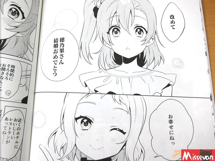 作者评论道:“Lovelive之后过了数年,μ's的成员长大了,也交到了能携手共度人生的另一半。在这样的世界观下,讲述了女生们的欢乐趣事!”在穗乃果的第二次结婚典礼上已婚的μ's全员集结,作为偶像组合出道的雪穂和亚里沙,以及成为演员的A-RISE绮罗翼等人也将登场,谈论关于对象和家族计划的话题。