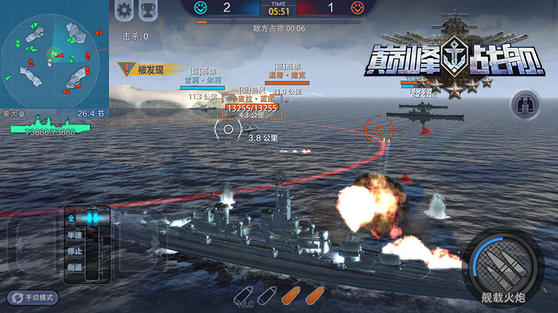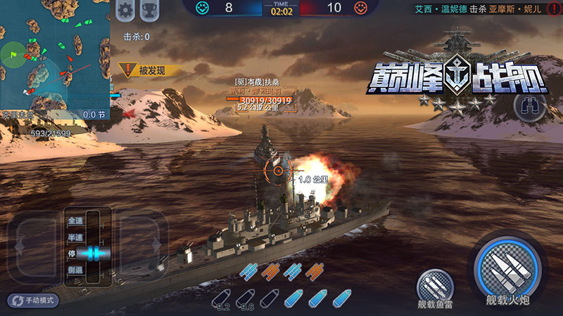 《巅峰战舰》为玩家提供了自动与手动两种操作模式,自动模式中舰船将会随着玩家设定的方向前进,玩家可以将更多精力放在对手身上,而手动模式是为更加追求操作和个性化的船长准备的,操作过程较自动模式更为复杂,需要兼顾方向、瞄准、开炮等操作元素,但是随之而来的好处是玩家对战舰的控制更加细致,在混战中可以带来巨大的优势。