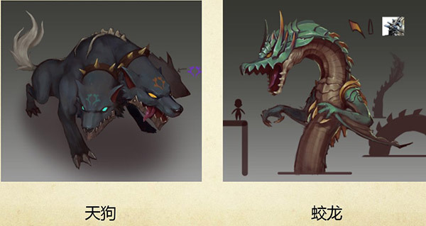 单从今日曝光的原画中看就不难发现,怪物整体设计贴合游戏背景故事设定。除了魔神蚩尤,还有龙龟、天狗、饕餮、蛟龙等上古魔兽在等着你!