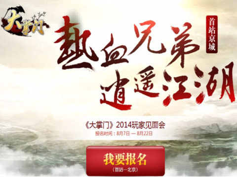 各位掌门,是否还记得曾经征战在《大掌门》的江湖岁月,我们结交了多少莫逆之交,我们称兄道弟,怀揣着各自的武侠梦奋战在战火燃烧的掌门世界,艰辛历程,记忆犹心。2014,激情夏日,由玩蟹科技精心打造的《大掌门》“热血兄弟,逍遥江湖”玩家见面会已经华丽来袭!武林畅谈,把酒言欢,各位掌门,你们准备好了吗?