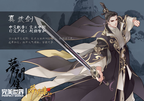 在声优阵容方面,为呈现真武剑的飘然出尘之气,官方特邀曾为《古剑奇谭》中的紫胤真人配音的宝木中阳担任真武剑的中文配音。日文配音则邀请到了杉田智和,杉田智和为超人气动漫《银魂》中主角坂田银时配音,拥有相当高的人气,厚实而有磁性的声音,更是将真武剑的帝王气息和仙风道骨完美突显。而虎头金刀这位健气强壮的boy自然是要找山下大辉来演绎啦!山下大辉曾担任热门动漫《飙速宅男》中的主人公小野田坂道的配音。热血、专注的语言风格,与虎头金刀的坚毅高度贴合,相信以山下大辉本身的独特音色可以让虎头金刀这个角色更加丰富完美。