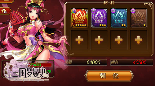 强化武将最基础的自然就是提升等级了!通过使用相对应类型的经验卡即可为武将大幅度的提升经验!使用相应类型的突破石可进行等级突破,当玩家达到15级时,武将的二段突破将开启。玩家可以通过突破提升武将的等级上限!