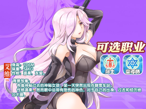 先来介绍一下《如果的世界》中的公认女神——冷艳御姐艾维,别看艾维外表很高冷,其实她可是非常的温柔和友爱呢。不过艾维有着神秘的过往,没有人知道她过去的经历,只知道她在某一天突然出现在艾瑞尔大陆的融雪车站。顺便说一句,选择艾维的小伙伴们,她的职业发展可以是剑士和魔导师哦。
