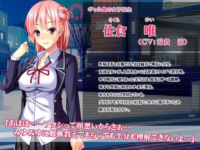 两次改编动画的轻小说《我的青春恋爱物语果然有问题。》的由比滨结衣(由比ヶ浜结衣)一直是作品中的高人气角色,带点粉色的包子头是她的招牌髮型,然而最近却在18禁游戏发现她的踪迹……难道「看起来有在援交的角色排行榜」果然成真了吗?