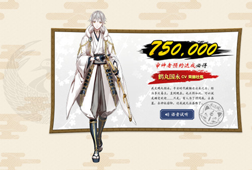 审神者预约达75万:游戏公测后,审神者必得“鹤丸国永”。
