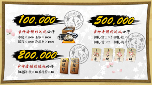 审神者预约达50万:游戏公测后,审神者必得御札富士、松、竹、梅各2个。