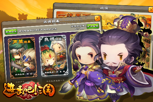 休闲策略手游《进击吧!三国》Android、iOS双平台公测震撼开启,赵云、关羽、吕布、诸葛亮,这些三国时代的英雄名将,都能成为你麾下的得力战将!游戏根据三国历史,打造出百余名特色鲜明的英雄武将,玩家在游戏中可以不但收集各路英豪,更可以通过武将升级、武将进阶、技能修炼来提高他们的战斗力,打造独一无二的超级萌将,让他们成为你称霸三国时代的先锋!