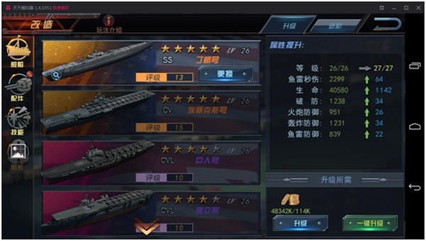 等级是这个游戏里最关键的提升战斗力的方式,通常升1级都能让你的战舰有比较大幅度的提升。而提升等级的主要方式就是消耗原油攻打战役获取经验,因此原油是游戏中比较基本和重要的资源。除了可以每天购买一定量的原油以外,还可以通过各种各样的玩法和活动获取储油罐,这些也是有效提升自己经验和等级的捷径。