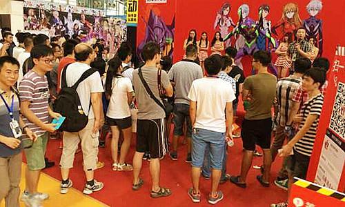 而在深圳、南京的EVA 展区,则有cosplay美女倾情助阵。EVA是一部经常被用来COS的动漫;但要把两位女主角凌波丽和明日香演绎得栩栩如生,并不是一件易事。在EVA展区现身的这几位美女Coser,对角色性格的把控都非常到位,COS效果惊人神似。COS女神还在现场与粉丝们零距离互动哦!与玩家亲密合影的方式,引来了大批宅男疯狂围观。