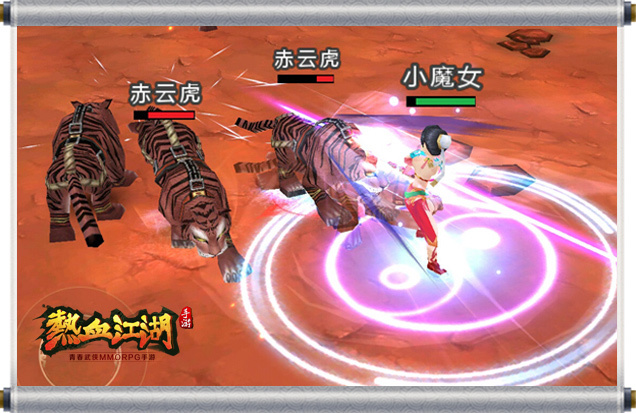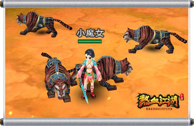 刷老虎,绝对是老江湖们记忆中难忘的升级经历。全身红毛的赤云虎,是曾经被人养过的老虎,身上裹着盔甲。其不象黑血虎那样会主动攻击人,是不太强的怪物,但也不要轻易招惹它。
