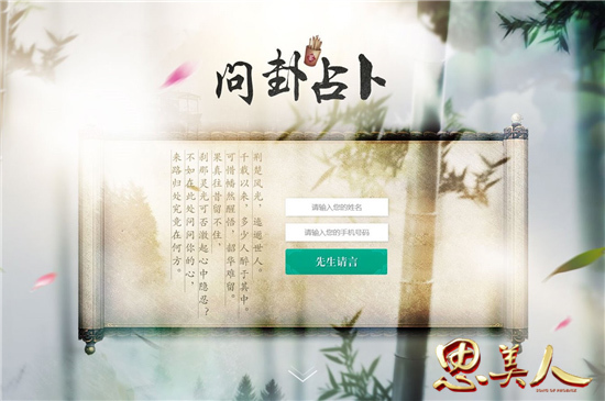 千古国风韵,故事与谁听。除去精彩剧情欣赏与占卜算卦玩法,在《思美人》手游概念站中,我们还备下酒馆杂闻等你一探究竟,更有玩法求索,美人美图等惊喜板块等待侠士来寻。预约已然开启,静候君来,携游于《思美人》手游为你编织的千载传奇之中。