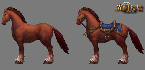 首先是古今中外通用度最高的坐骑——马,通体火红的外形英武神骏,令人不禁想起传说中的“赤兔”,不过在魔幻世界的食物与力量加成下,它的属性必定比赤兔更为强大。