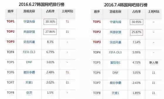据gametrics在6月17日公布的数据,统治韩国网吧长达4年的MOBA类电竞游戏《英雄联盟》的占有率被《守望先锋》超越。自从《英雄联盟》2012年击败剑灵公测之后,统治了韩国网吧长达202周,从来没有一款游戏能把与《英雄联盟》的网吧占有率差拉近到10%以内,《守望先锋》创造了历史。正是这件事情引发了最近的《守望先锋》和LOL之争。