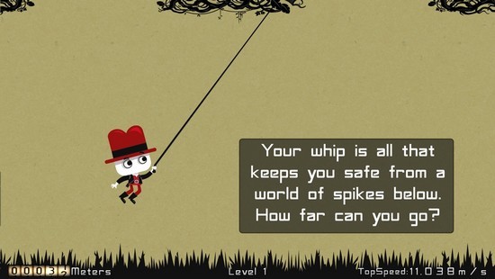 《摇摆的皮鞭》(Whip Swing)是一款横版跑酷手游,游戏中玩家将操作一个戴红帽的主角,挥舞皮鞭如人猿泰山搬在森林场景中飞翔,当然途中你必须控制好挥舞鞭子的时机,以用来躲避场景中的各种障碍。没错,你就是借助鞭子荡来荡去的力量前进,根本没有神马SM,想太多!