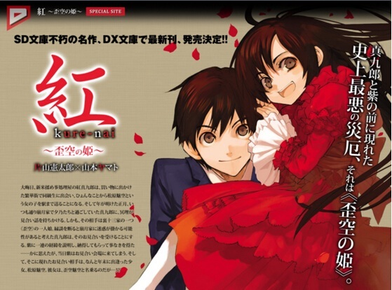 TV版动画由Brain's Base制作,泽城美雪反串出演男主。《红Kure-Nai》是日本小说家片山宪太郎著作,山本大和绘制插画的轻小说作品。所属Super Dash文库。日文版由集英社出版发行。这部作品跟作者另一部著作《电波系彼女》有同一个世界观和背景。