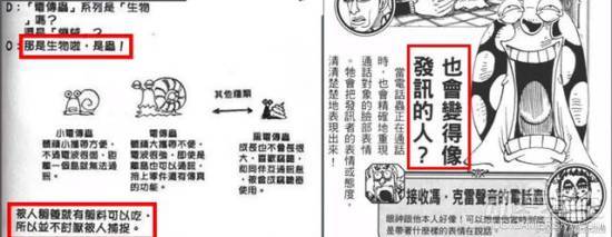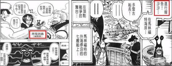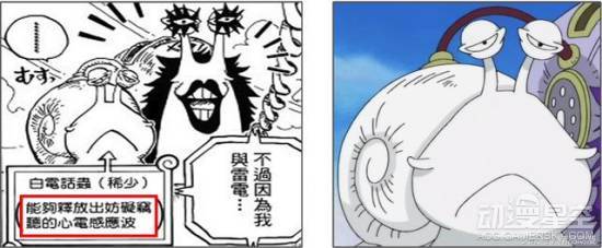 而放映子能将“监视 用电话虫”拍到的映像,投射在较大的画面广播,特点是比人还大。漫画551 话海军曾以此在香波地 群岛现场广播海军本部的“大事件”。
