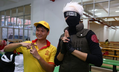 这场来自二次元的考试在现场聚集了30多名「火影忍者」coser爱好者,他们中有鸣人、佐助、小樱主角的coser,也不乏动漫中其他角色,比如,考官森乃伊比喜,奈良鹿丸、秋道丁次、日向宁次、李洛克、天天等广受中国火影迷喜爱的角色。