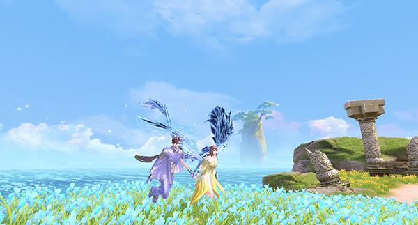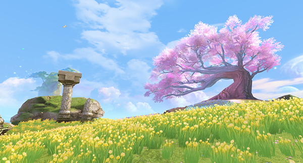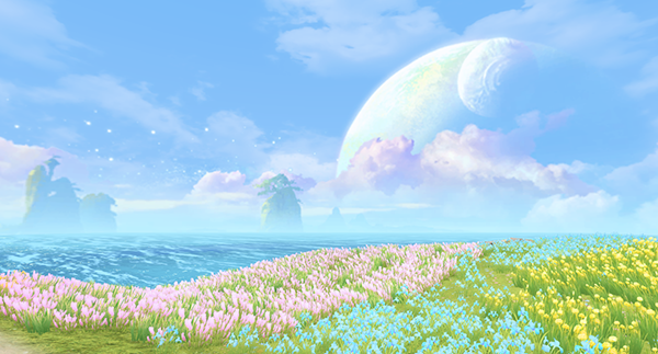 泊莺花谷——作为此次倾心测试的全新场景,整个岛屿被五颜六色的鲜花覆盖,远处缥缈云海、巨大月亮,营造出一副东方幻想的唯美氛围,而不远处的粉色大树,一定也见证了无数俊男靓女的浪漫情思吧。