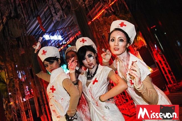 4名血护士现身上海地铁,他们黑发百衣,身上染血面目狰狞,甚至吧等地铁的孩子吓得哇哇大哭。她们为何会出现在地铁?上海地铁运营方表示,近期确实接到乘客反映,在地铁内会看到一些奇装异服怪异打扮的人,包括“幽灵”、各种动漫cosplay人物,都引发了不小的恐慌,上海地铁最近这是怎么了,答案是:都是万圣节惹的祸!