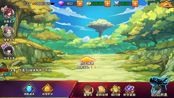 玩家可以多次挑战发现的BOSS,在初次战斗后,能够选择向好友求助,一起来攻打这个BOSS。当BOSS被击败后,获得最后一击的玩家将能够获得额外奖励。而同时,玩家每次攻打BOSS都能够获得积分,当积分积累到一定数量时,则能够获得对应奖励。