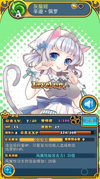 随着战斗的深入,关卡的难度逐渐年提升,这时王子和公主之间会培养出爱情度,爱情度可以增加王子的攻击力和公主魔法的威力。而且随着爱情和公主等级的增加,公主的声音和外形还会不同程度的变化,说出一些奇怪的话来(快够~
