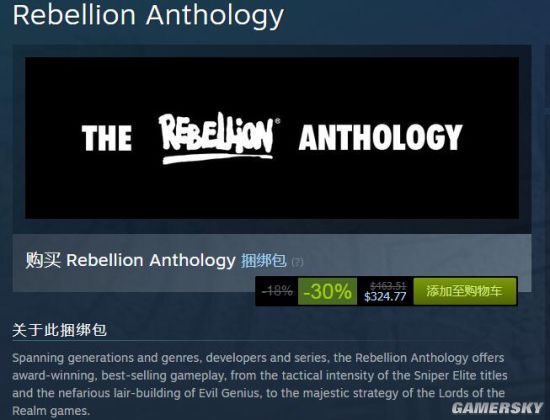 Steam上最贵的游戏包:开发商Rebellion的选集美服售价463.51美元,不过现在正在7折促销售价324.77美元,其中包含知名的《狙击精英》系列、《异形大战铁血战士 2000经典版》、《邪恶天才》系列等等,以及所有的DLC内容,总之看起来这算是个游戏收藏品。
