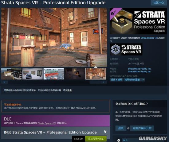 Steam上最贵的单体产品:《Strata Spaces VR – Professional Edition Upgrade》,这是全景虚拟环境搭建工具《Strata Spaces VR》的一个专业升级包,售价995美元,这个应用可以让设计师和建模师在VR实景下编辑设计,也就是说,这其实是一款专业领域的软件,一般人是用不到的。