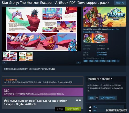 Steam上最贵的艺术集:《星际传说:逃离地平线》艺术册售价200美元,在商店页面,开发商还特意注明了,这个画册内容和免费DLC里的内容一样,但如果你是打算支持开发团队的粉丝,购买这个PDF的文件来给予他们帮助真是雪中送炭。但是1300块?没有更便宜的选项了么?