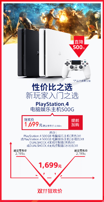 PS4公布双11狂欢低价 1699元即可秒杀PS4