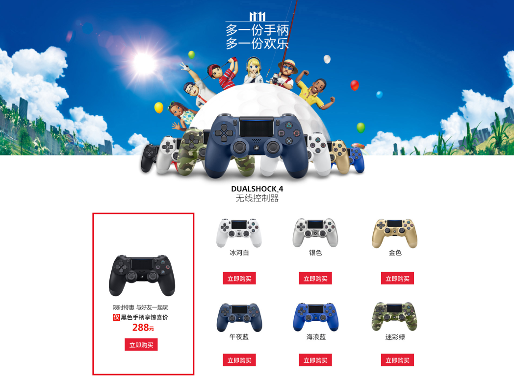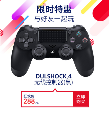 本次双11活动中,PlayStation天猫旗舰店、京东自营PlayStation官方旗舰店均会售卖多款不同颜色手柄,其中,黑色手柄更是限时特惠至288元。