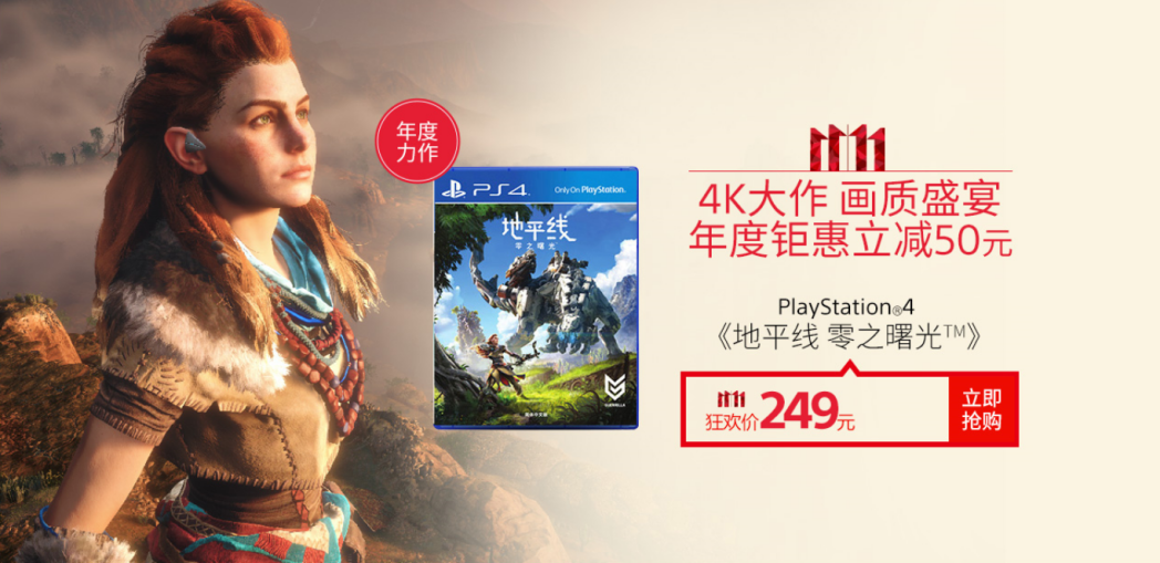 还愁入手了机器没有游戏玩?游戏特惠阵容驾到!本次参与双11特惠活动的游戏共分为三部分:新游大作、游戏套装及特惠精选游戏。值得注意的是,刚刚推出DLC的3A级独占大作——《地平线 零之曙光》双11促销价格直降50元,仅售249元。