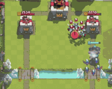 第二局,诺克发的力量也拿出了节奏极快的野猪卡组。而小陈在双塔受到重创的情况下果断选择放弃右路公主塔,开始与力量哥对拆。凭借加时赛石头人卡组的推进优势,小陈再次拿下比赛的胜利。