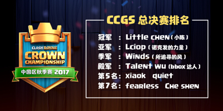 2017 皇室战争CCGS中国区秋季赛总决赛于11月12日圆满结束!在最终的冠军争夺战中,来自广州的16岁少年Little chen(小陈)3:2击败“力量哥”Lciop(诺克发的力量),夺得CCGS中国区总冠军!