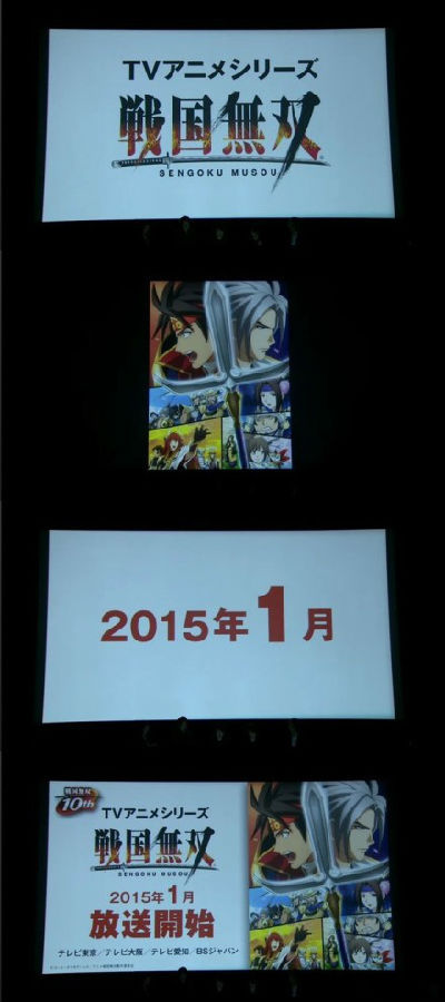 【M站 老南街 整理报道】在今天举行的《战国无双Chronicle3》制作完成发布会上,官方意外的公开了TV动画版《战国无双》的制作决定。根据发表的情况TV动画版《战国无双》将从明年1月开始进行播出,在今年的《战国无双》系列曾经尝试过一次OVA动画化,名为《战国无双SP 真田之章》,相信这次的TV版也会启用当时OVA版本的制作班底,不过等其他情报官方还未发表。另外《战国无双Chronicle3》将从12月4日开始发售,登陆3DS及PSV平台。