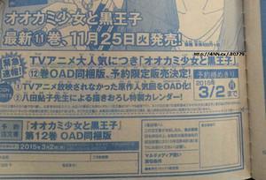 12月号的集英社《 别册玛格丽特》宣布2015年4月24日发售的《狼少女与黑王子》漫画第12本单行本将与未公开动画DVD同捆推出。在DVD中将收录由受欢迎漫画部分改编的动画,而且不在正在进行的电视动画播出。同时也将赠送由画师Hatta 绘制的独家日历。