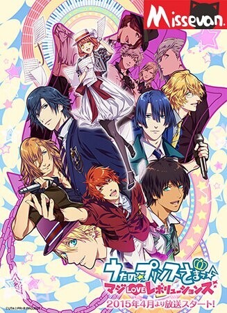 【M站 米沫 整理报道】预计于2015年4月起开播的电视动画「歌之王子殿下」第三季,公开了相关情报。据悉,此番的新作标题确定为「歌之王子殿下」真爱革命(REVOLUTIONS)」,会由星野真负责执导,而音乐和动画制作依然会分别交由参与前作主创的“Elements Garden”和“A-1 Pictures”负责打理。在配音演员阵容方面,出演七海春歌的泽城美雪继续会同寺岛拓笃、铃村健一、谷山纪章、宫野真守等一干实力派男性声优共演。而他们各自献声的动画角色,也均出现在了公开的新作主视觉图中。