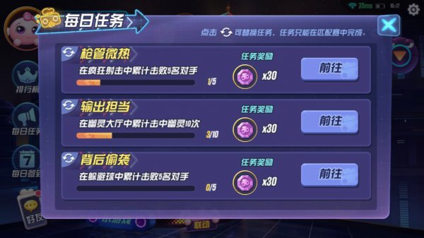 每日任务页面在主页面左侧,点击可查看今日任务,每天可以完成3个任务,如果少侠觉得任务完成困难,还可替换一次任务。