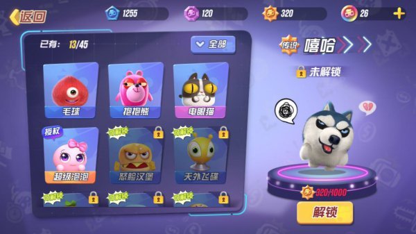 在主页面点击角色按钮,可以进入到角色页面,《玩具大乱斗》中有超多激萌可爱的角色,这些角色分为稀有角色、史诗角色和传说角色,刚刚加入玩具城的超级泡泡就是传说角色!在活动期,超级泡泡只需要100史诗币就可以解锁,小伙伴们还等什么~史诗币可通过排位赛免费获得!