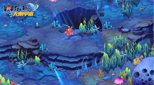 与火山星截然相反,海洋星就是一片蔚蓝而纯净的海底世界,这里的一切都以水系属性为主,包括精灵和能量。这颗星球拥有着丰富的水产资源,斑斓的七彩贝壳,美丽的珍稀珊瑚,丰富的鱼类等等,玩家们在这里可以探险、捕鱼。同时,海洋星还有一种非常特殊的物产,就是可以产生大起泡的海螺,至于它的实用功能,有待玩家们进一步挖掘。