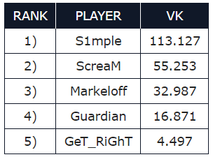 从榜单中可以看到,pasha和教父fallen等人在国外CS:GO玩家心目中是最受欢迎的选手。同时由于此次统计仅限于现役的职业选手,因此例如shroud和summit1G等在直播平台大红大紫的前职业哥们,则并没有被包括在内。