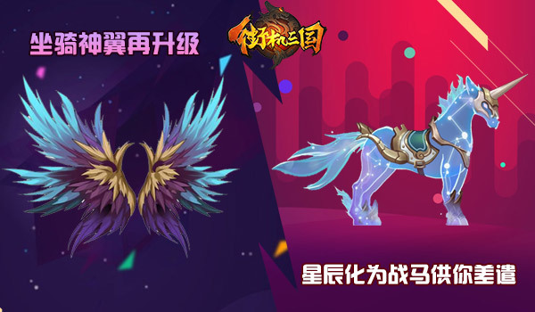 《街机三国》全新坐骑即将登场,来自星空的战马水晶之幻与闪耀着神秘之蓝的缤纷之翼即将登场。两个全新的幻化装备将允许你进一步强化战力。现在就准备好材料,往全新的境界进化吧!