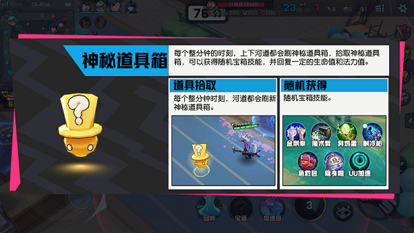 此外,《非人学园》还在玩法上加入了很多崭新的元素,比如随机出现在河道的神奇道具,从回血、减CD到伤害,以及减速等各种功能十分随机丰富,给每个英雄都增加了变化,能够根据道具来意想不到地套路对手。