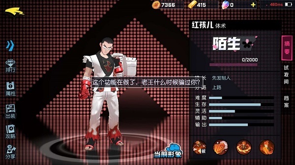 开场动画之后,新手教学继续发挥《非人学园》的二次元风格。玩家们将操作红孩儿,在老爸牛魔王的指点下熟悉游戏基本的战斗操作。随后进入主界面,更能看到各种梗玩出花。世界聊天会变成弹幕飞过,匹配和排位的入口是巨大的车身广告,甚至连邮箱都会给自己加戏,拽拽地说“没有邮件你瞅啥”。
