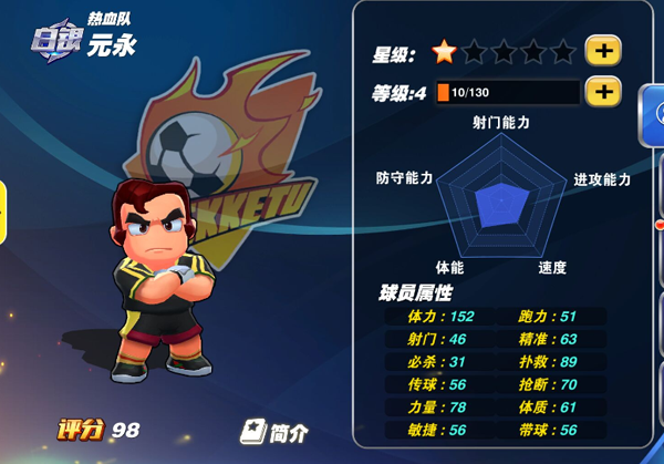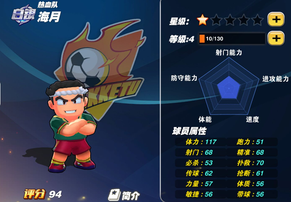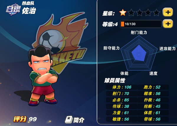 球员特性:蓄力强化、速度强化、击中意念。