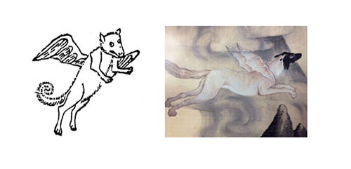 《山海经?北山经?北次三经》中记载:龙侯山再往东北二百里是马成山,山里栖息着一种异兽,形状像普通的白狗却长着黑脑袋,它还长有翅膀,一看见人就腾空飞起,名字是天马,它的叫声犹如在呼唤自己的名字。