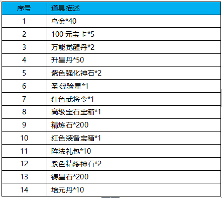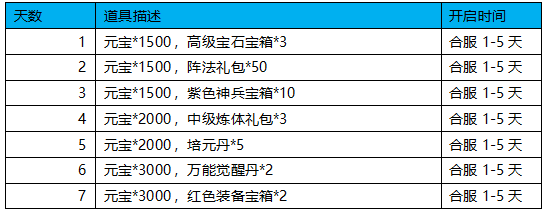 活动内容:在活动期间,玩家挑战世界boss可获得合服大礼包一份,合服大礼包可开出稀有道具