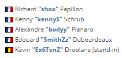 现年26岁的shox在一段时间的沉寂之后,王者归来,重新组建自己的G2阵容。在新阵容当中,shox将会召入前G2教练、自己的好基友SmithZz,同时也会召入法国电竞常青树Ex6TenZ。为了保住自己的Major名额,shox召入了bodyy和kennyS。