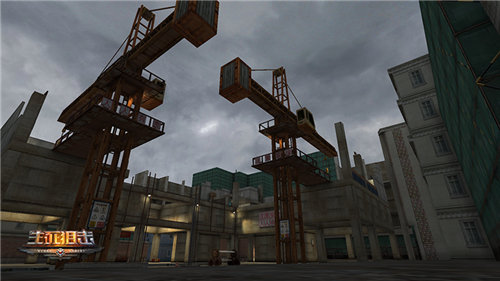 地图名为双塔惊魂,实际上就是一座废弃的建筑工地,而两座塔吊也是双塔这个名称的由来。地图的整体架构非常简单,场景空旷一览无遗;在这样的一个地图中进行对抗,氛围自然是十分激烈的。高耸的建筑承重梁将地图的重点从平面拉到垂直空间,而散落的四个弹射点也方便了玩家随时切换位置。